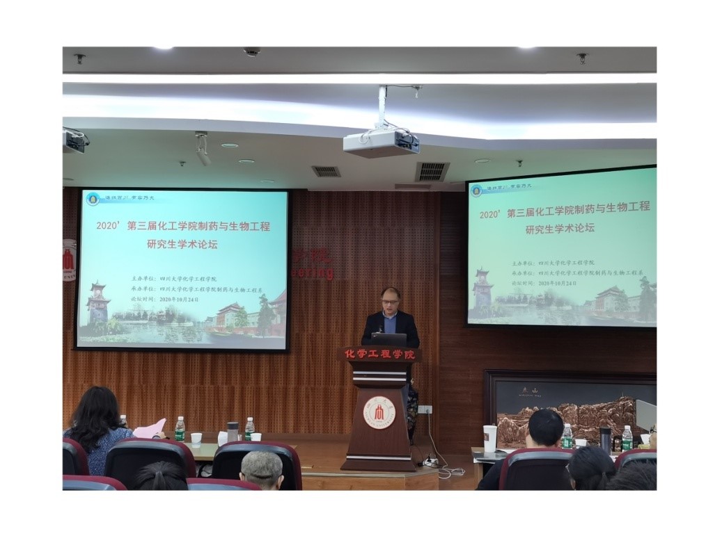 正行楼313报告厅顺利举行。论坛学术委员会主席宋航教授,学术委员会委员李延芳教授,杜开峰教授,马丽芳副教授,李子成副教授,黄文才副教授,杨坤副教授,李德富副教授,刘文彬副教授,姚长洪副教授,王雅博副研究员,陈靖副研究员,葛黎明老师,李盼禹老师,孙巧媚老师以及制药与生物工程系研究生100余人参加了本次论坛。此外,本次论坛还特别邀请了西南民族大学王晓玲教授,成都中医药大学崔名全教授,西华大学杨文宇教授,成都理工大学何泽教授,西南交通大学谭欢教授,西南民族大学李新莹教授作为本次论坛的特邀嘉宾。
