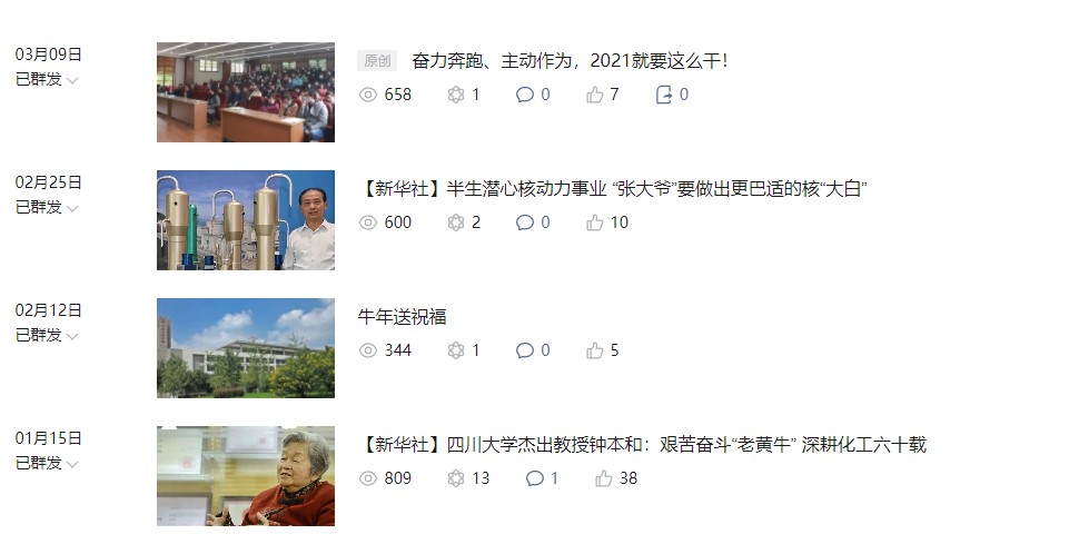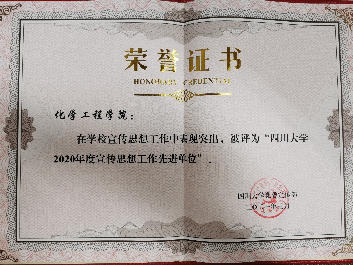 以习近平新时代中国特色社会主义思想为指导,推进党的十九届五中全会精神学习宣传入脑入心,弘扬抗疫精神,围绕新工科的发展思路和第五轮学科评估及“双一流”建设中期验收两项大考,紧密结合学院工作实际,围绕重大事件和重要时间节点,传统媒体与新媒体融合出击,主动积极作为,推出“学科建设”“课题组介绍”“优秀毕业生”等系列宣传报道,推动课堂“活”起来,活动“热”起来,师生“实”起来,获得了师生的一致好评。2020年,新华社宣传报道学院杰出教授钟本和先生艰苦奋斗“老黄牛”精神,学校官方网站和专题专栏采用学院稿件32篇,学院网站和“川大化工”微信公众号发布新闻动态400余篇,以“感谢感恩”为主题加强江安校区卓工楼文化建设,宣传思想工作特色鲜明、亮点纷呈。