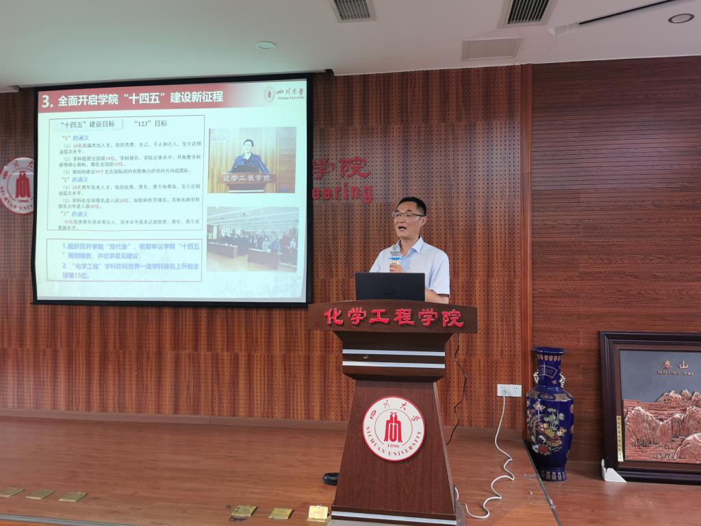 在望江校区化工楼313会议室组织召开2021年上半年工作总结暨全院大会。学院全体党政班子成员、工会主席和全体教职员工参加会议。会议由学院党委书记庞国伟主持。