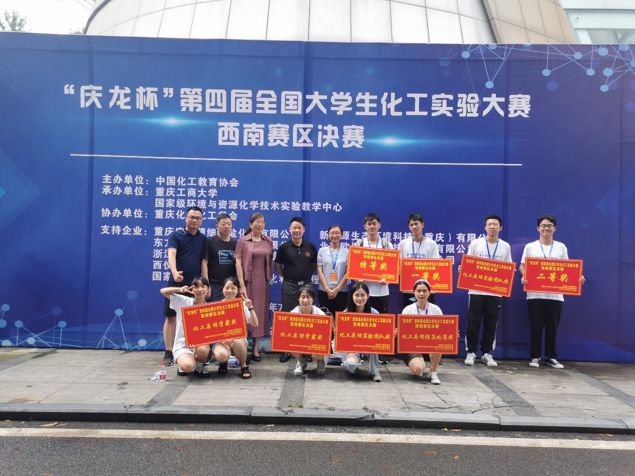 3支参赛队伍在本次化工实验大赛西南赛区决赛中再创佳绩,总成绩排名前三。其中由朱瑶瑶、康乃馨、张鑫博同学组成参赛队伍获西南赛区特等奖(第一名),并将与其他5所高校(重庆工商大学、重庆文理学院、重庆理工大学、四川轻化工大学及攀枝花学院)的参赛团队一起,代表西南赛区参加于2021年8月11日至14日在南京工业大学举办的全国总决赛。另外两支队伍分别获得了西南赛区一等奖、二等奖,此外还获得化工原理学霸奖3项、化工原理实验团队奖2项及化工原理仿真单项奖1项。