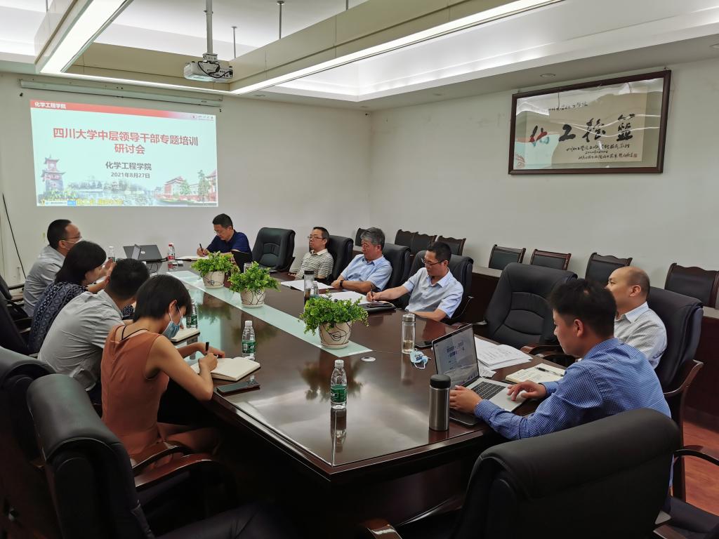 一是班子成员带头学习研讨。8月27日上午,学院在望江校区化工学院235会议室组织召开学校中层领导人员专题培训研讨会。会上,学院党政领导班子成员、工会主席等8名同志结合培训内容和分管工作,从切实提升政治“三力”、扎实做好“我为群众办实事”实践活动、基层党组织建设、人才培养、科学研究、师资队伍建设等方面分析目前存在的问题不足,结合学校有关会议精神,提出切实可行的改进措施。三个小时的研讨会,大家敢于揭短亮丑,敢于抓真碰硬,明确下一阶段工作重点,切实提升领导能力,推动学院党建和学科发展再上新台阶。学校党委组织部相关老师参加了此次研讨会。