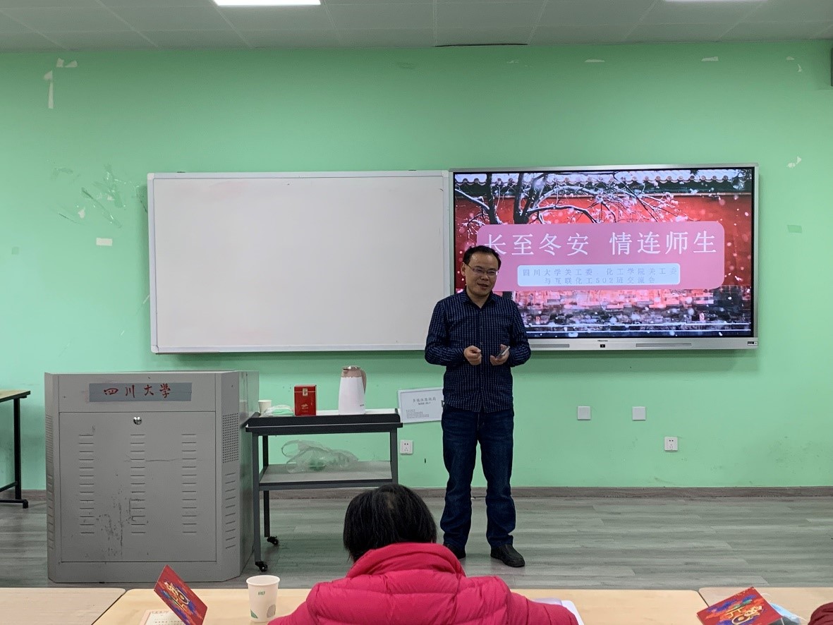 活动第三部分,互联化工2班班主任党亚固老师致辞。党老师首先向同学表达了深切的关心,同时也对关工委老师的支持表示了感谢,然后分享了自己的学习科研经历,希望通过自己经历的分享激励同学们怀揣感恩之心,珍惜现在幸福优越的条件,努力学习,勤学不辍。