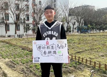 劳动小能手2021级刘世博同学在开心农场进行宣讲动员