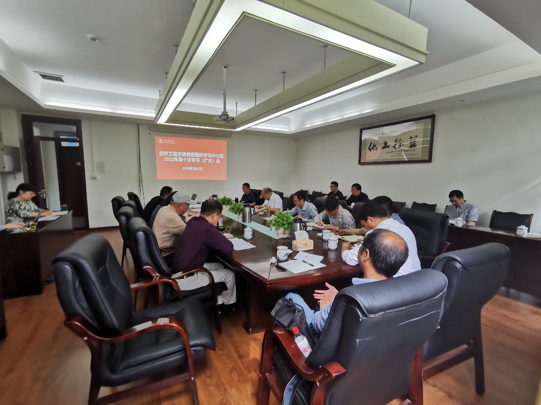 在望江校区化工楼235会议室组织召开2022年第十次党委理论学习中心组学习(扩大)会。学院全体领导班子成员、党委委员、工会主席、专职组织员、系(基地、中心)主任和院长助理、科级干部等参加会议。会议由学院党委书记李天友主持。