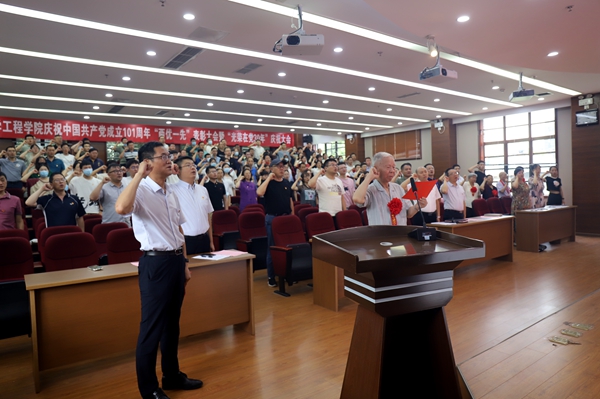 大会举行了2022年新党员入党宣誓和老党员重温入党誓词活动。学院老领导、有66年党龄的梁明征同志领誓。