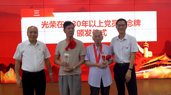 随后,大会举行了“光荣在党30年”纪念活动。李天友书记和赵长生院长为党龄满30年的党员代表颁发了纪念牌。