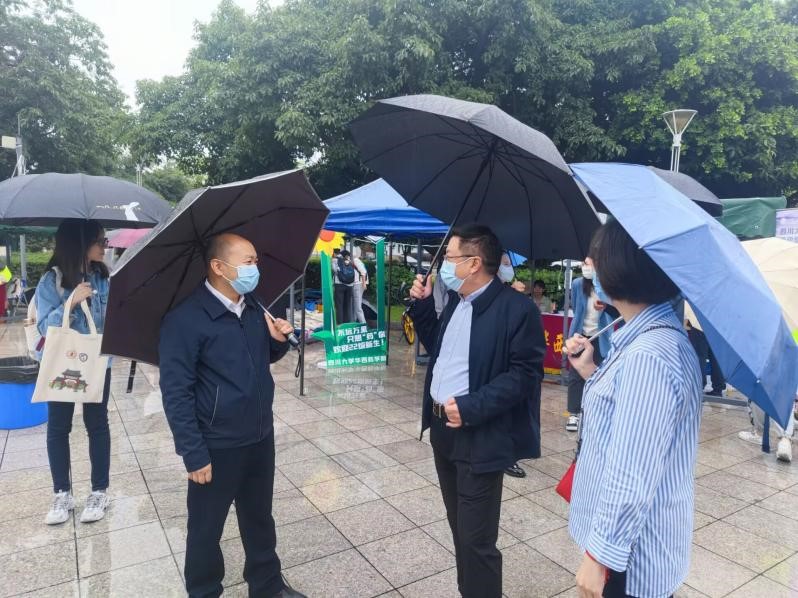 党委副书记郭勇(中)、学院党委书记李天友(左)和副书记姜利寒(右)走访新生报到点