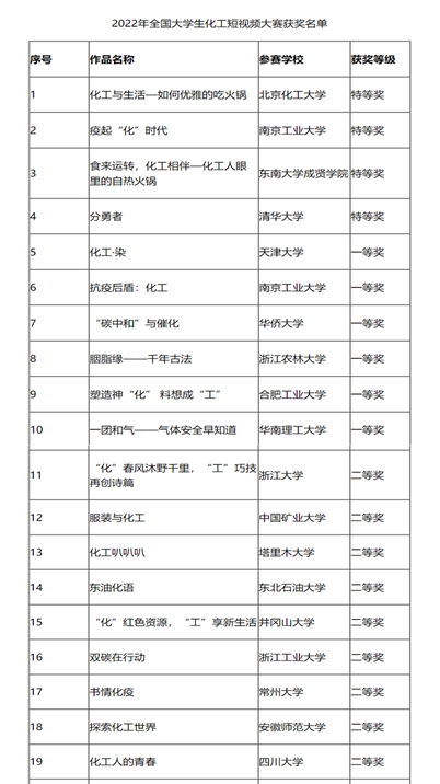 2022年4月至11月,由中国化工学会主办、南京工业大学承办的2022年全国大学生化工短视频大赛已顺利结束。经过初赛、全国复赛、全国总决赛等环节,91黑料