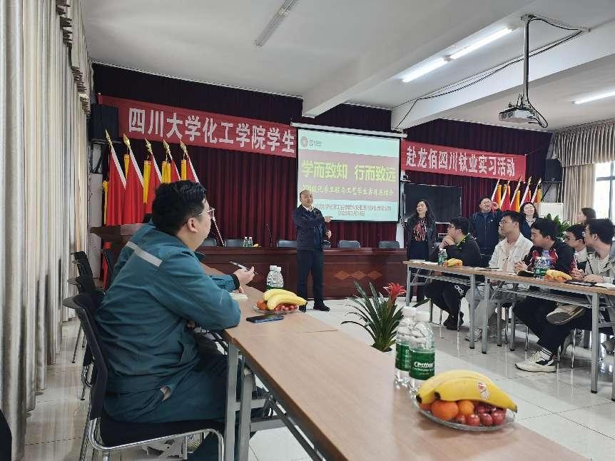 党委书记李天友、党委副书记兼纪委书记李德富、党委副书记姜利寒、教授委员会主席王辛龙、化工系主任袁绍军等一行前往龙佰四川钛业有限公司慰问实习学生和带队老师。