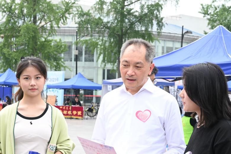 学校党委副书记张伟与活动志愿者交流