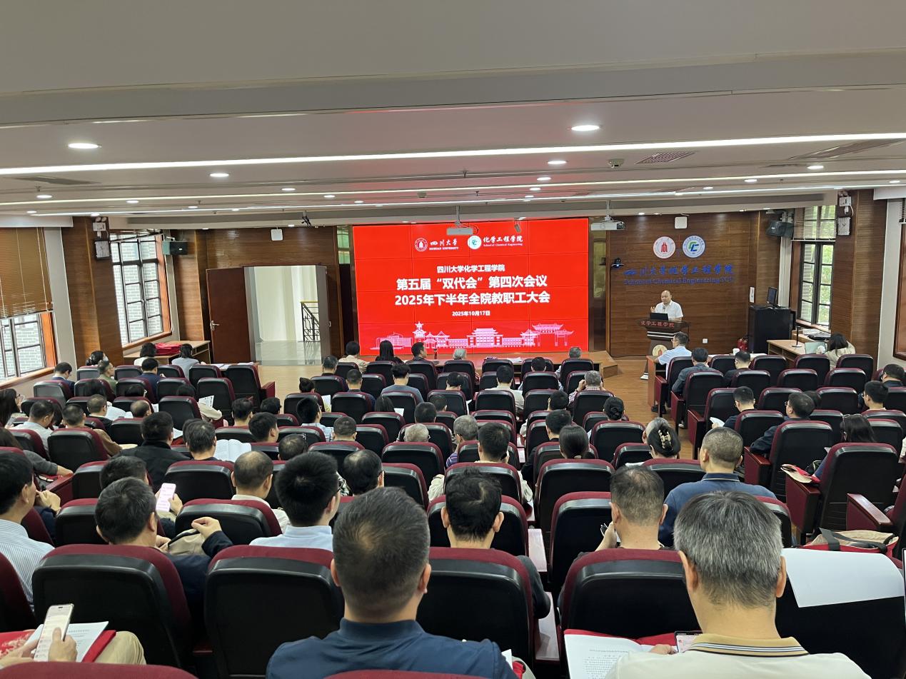 郭孝东代表学院报告工作,并作财经报告。他指出,2025年以来,学院始终坚持党的领导,深入学习贯彻中央八项规定精神,扎实推进党建与事业发展“一融双高”,事业发展取得新突破:今年以来,学院获批国家自然科学基金项目19项,到校科研经费超过1亿元,新增国家级青年人才1人,荣获全国化工设计大赛特等奖,第九届大学生Chem-E-Car竞赛特等奖,同时学院成功入选学校“一院一策”职称评审改革试点,等等。郭孝东希望全体教职工坚守立德树人初心,勇担科技报国使命,持续提升教学能力,聚焦“四个面向”推进科研创新,扎实完成本科教育教学评估等重点任务。