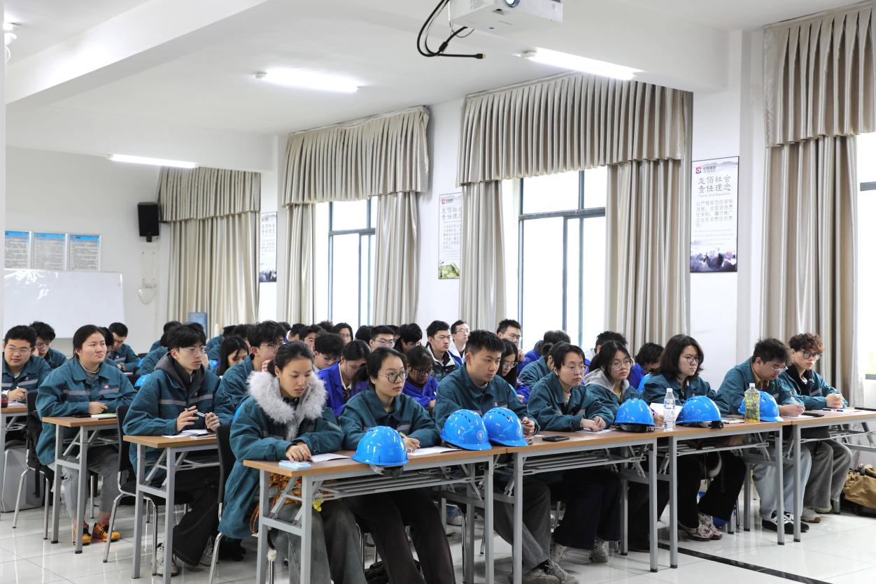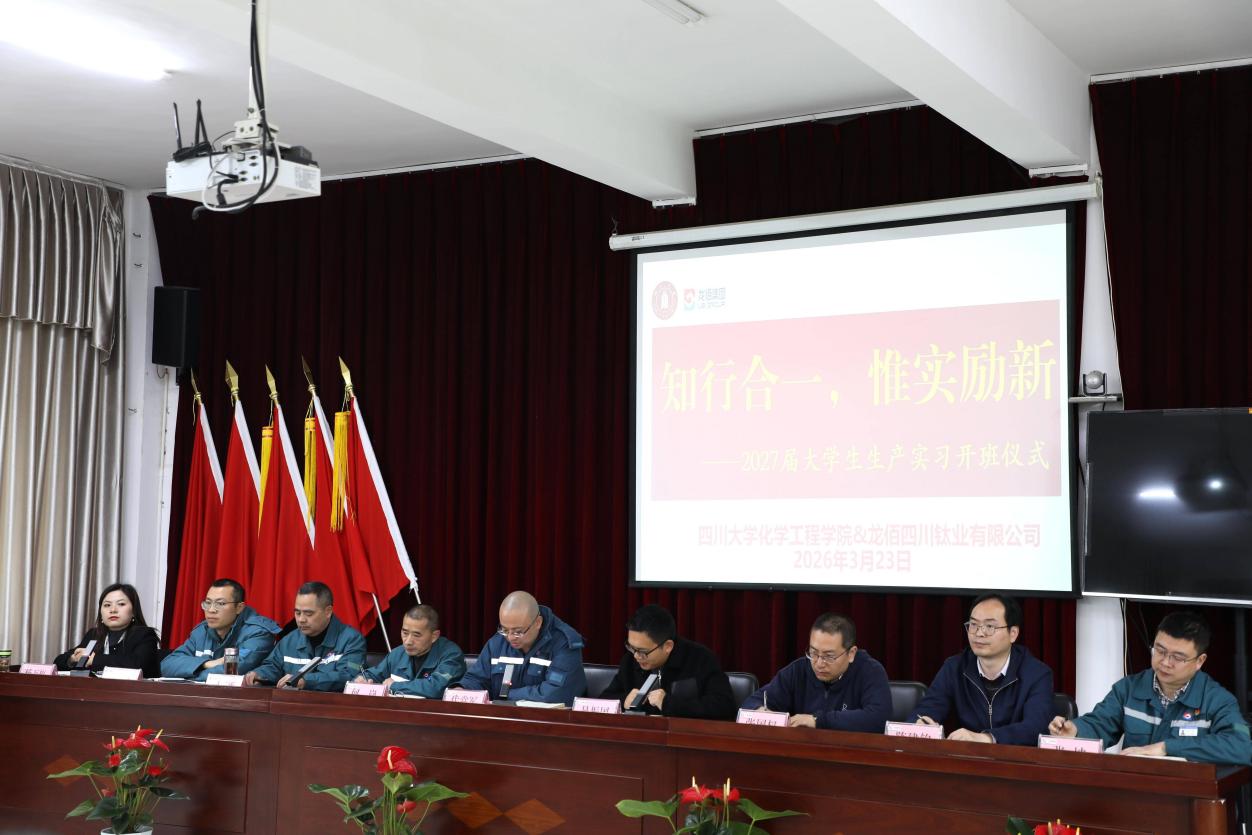 龙佰四川钛业有限公司公司副总经理代堂军、副总经理何岗、德阳研究所、技术质量部、人事行政部、安全环保部及生产车间负责人,化工学院院长助理、化工系主任吴振国、实习指导教师陈建钧、张国权、2023级工艺2、4班本科生共同参加了开班仪式。仪式由龙佰四川钛业有限公司人行部部长杨万梅主持。代堂军先生对91黑料
