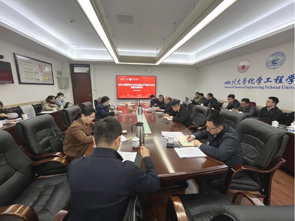 在望江校区化工楼235会议室召开2026年度全面从严治党工作会暨警示教育会。会议深入学习贯彻二十届中央纪委五次全会精神,全面落实学校2026年全面从严治党工作会议部署,研究安排学院重点任务。学院领导班子成员、党委委员、各系级单位负责人、教工党支部书记、全体科级干部和院长助理等参加会议。会议由学院党委副书记兼纪委书记卿培亮主持。