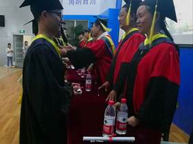 领导和教授们为全体毕业生拨穗授位)