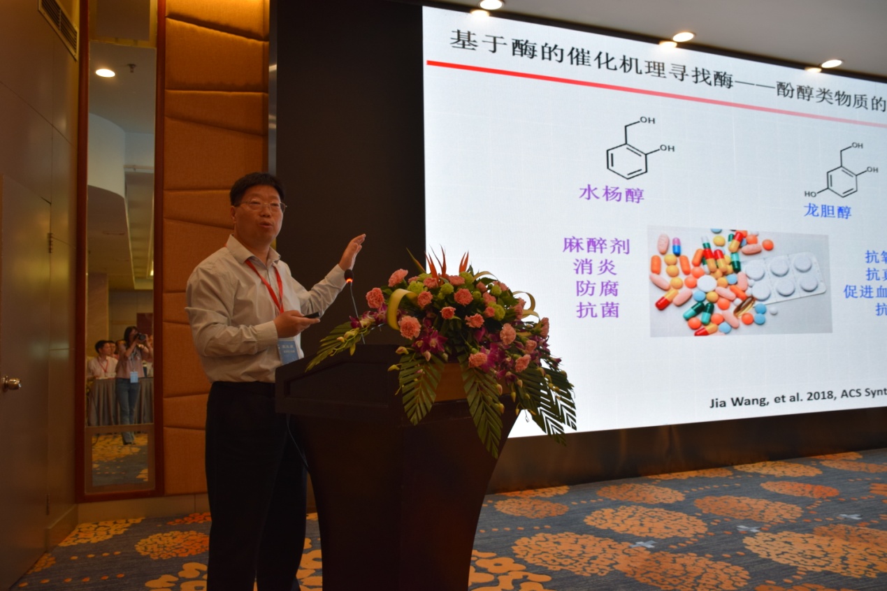 随后,来自浙江工业大学的郑裕国院士做了题为《精细生物化工的发展与实践》的主题报告,为与会学者介绍了我国精细化工的现状与面临的挑战分析,说明了生物化工方法在精细化工领域的重要意义,并结合具体的药物说明了腈化合物、环氧化合物以及双手性二醇的酶法合成方法;来自泸州老窖股份有限公司的张宿义总经理结合白酒发展历史,介绍了传统白酒发酵产业智能化发展的趋势;之后,来自北京化工大学的袁其朋教授、中国科学院大连化学物理研究所的赵宗保研究员、北京理工大学的李春教授分别做了题为《构建微生物细胞工厂高效合成高附加值产物》、《微生物油脂技术创新》和《重编程工业微生物的鲁棒性与智能性—抗逆基因线路推进绿色生物制造》的主题报告。