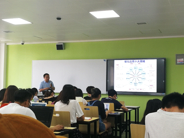 2007届校友,国家重点研发计划青年首席、张大煜青年学者邓德会研究员为同学们作了《穿着铠甲的催化剂》的学术报告,为同学们详细介绍了有关催化剂的专业学术性知识,例如催化剂的作用、发展、分类、新物质等。在研究员老师风趣幽默、同学认真专注的学习氛围中讲座圆满结束。报告结束后,熊博晖主任、邓德会研究员和杨铎工程师共同回答了学生的提问。