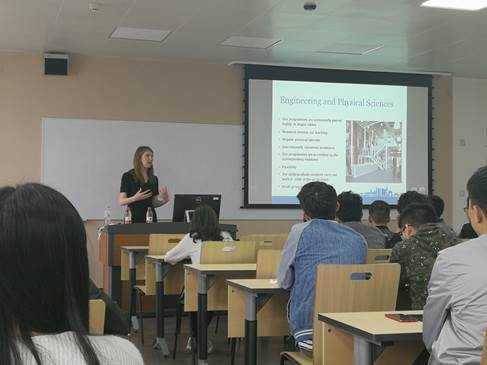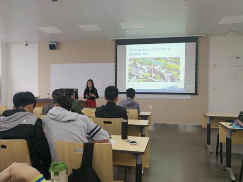 本科生举行了3+2联合培养项目的宣讲会。伯明翰大学英国本部中国事务负责人Nina Morris和伯明翰大学广州中心项目经理吴丽珊为与会同学进行了精彩的宣讲。
