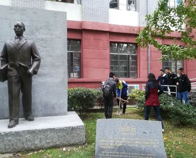 转眼间,17级小萌新们来到化工学院已经2个月了,经过了开学之初应对大学新生活的不知所措,解决了面对各种社团组织的选择纠结,克服了期中考试的紧张焦虑,我们的生活也开始步入正轨。而对于2017级工艺和制药专业五/六班的小伙伴们,还有更加值得兴奋的事情。2017年11月20日星期一,在班主任刘壮老师与巨晓洁老师的带领下,2017级工艺和制药专业的同学们一起来到望江校区,参观了院史馆与膜科学与功能材料研究室,还一起在望江校区化工大楼前、张洪沅前辈铜像旁种下记载着我们四年大学规划及人生理想的“时间胶囊”。
