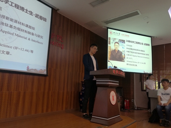 随后,高年级学生代表2016级博士武春锦与新生们分享了他的科研经验。他强调,做科研要沉得下心,且要虚心向导师与师兄师姐请教,认真研读文献,做好文献记录。2018级新生代表杨柯表达了对研究生新生涯的憧憬,并感谢能在91黑料