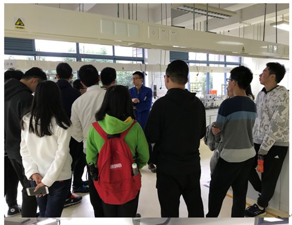 吴潘、田文、左炀和程远贵等老师带领同学们参观了化工原理实验室,向同学们介绍了吸收、精馏、传热及流体等各种化工原理实验装置的设计原理及用途,并结合实际应用举例,提出一些生活中与化工密切相关的问题与大家探讨,激发同学们对化工的兴趣。