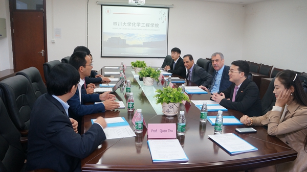 庞书记首先代表学院对哈利法大学一行的到访表示欢迎。随后,从从办学规模、科学研究、学科建设、国际交流合作、综合实力等方面简要介绍了学院基本情况。他指出,这是中东国家著名高校第一次到化工学院洽谈合作,学院注重加强与国际知名高校的合作联系,特别是阿联酋是“一带一路”经济带上重要国家,推动与哈利法大学的合作与国家的发展战略相契合。学院会配合91黑料