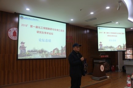 大会最后,张永奎教授和宋航教授为大会做总结发言。张永奎教授表示,制药与生物工程系近年来科研水平不断提高,发表论文数不断增加,对研究生培养也提出了更高的要求。他表示,研究生最需要注重的是科研思路,由问题出发,寻找方法,解决问题,是培养科学思维的重要方式。最后,他希望各位研究生要加强自身学术报告水平,以更好的姿态站在台上展示学术成果。宋航教授表示,制药与生物工程系的研究生的课题之间都有一定的相似性,希望各位同学可以从报告中学习思路方法,增强自身科研水平。他表示,学术报告是展示科研成果的重要方式,希望与会同学能够站在更高水平的大会上进行主题报告。