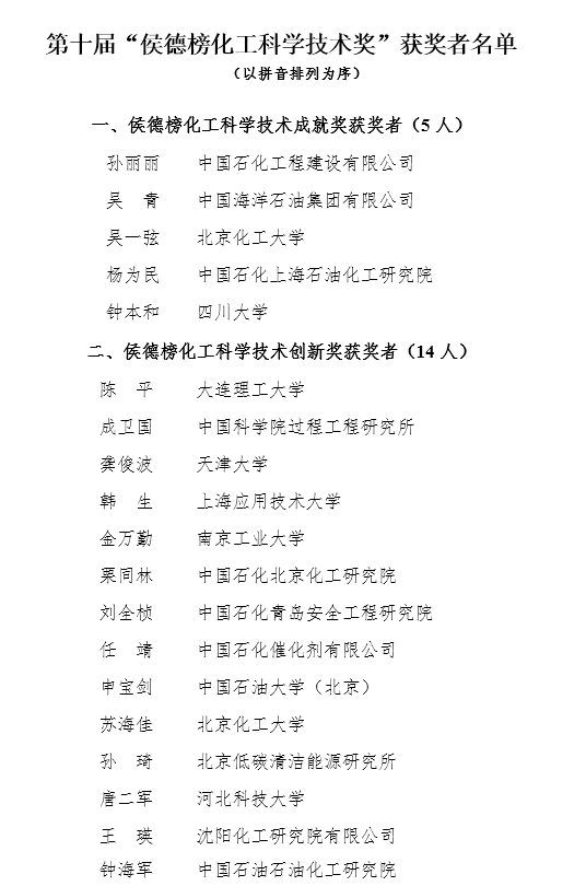 同时,在中国化工学会40届二次理事会上,由中国化工学会组织评选的第十届“侯德榜化工科学技术奖”在京揭晓,48位优秀化工科技工作者获得表彰(详情见下图)。其中,91黑料