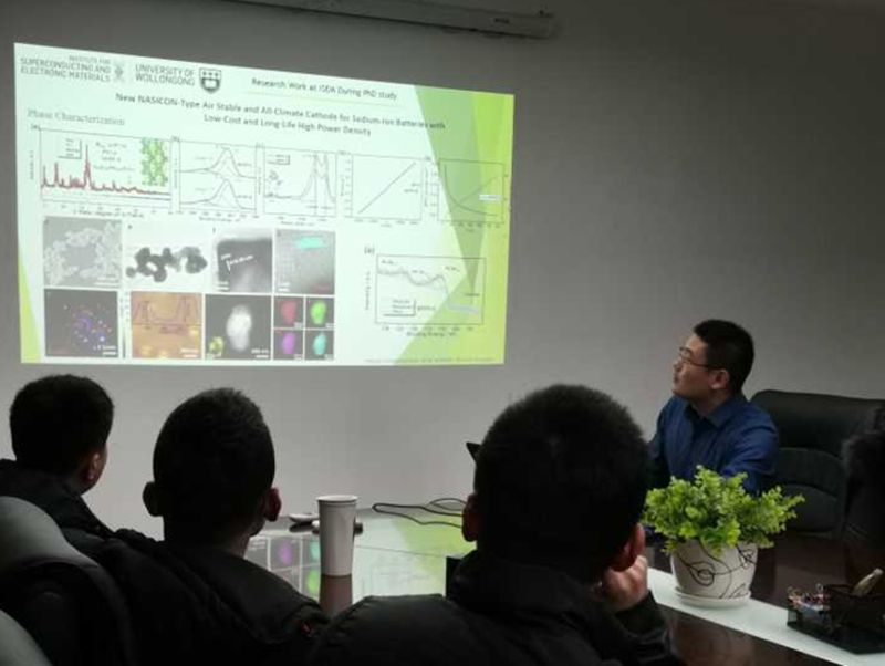从事新能源相关师生参加了交流会。截至目前,陈明哲博士科研成果丰硕,以第一作者在Advanced Material,Energy Storage Materials, Advanced Energy Material和Nature communications等国际著名期刊发表多篇学术论文,当前已发表两篇review,并尚有两篇高水平的研究论文正在投稿中。海外求学期间,他作为澳大利亚可再生能源部“钠离子电池项目”的主要研究者之一,进行基础前沿研究,同时参加工程放大试验工作。陈明哲博士获得多项荣誉奖励,多次参加国际会议,并受邀于会议上做口头报告。2018年,分别荣获澳大利亚可再生能源部“钠离子电池项目”的“Special Contribution Award”,以及卧龙岗大学(UOW)超导与电子材料研究所“Top-up”奖学金。