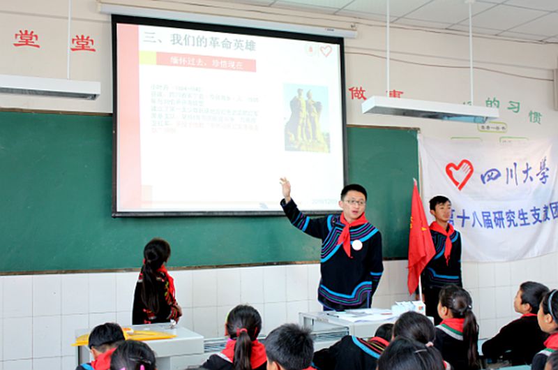 第十八届研究生支教团并担任团长,带领团队在昭觉县开展教育扶贫工作并担任团支部书记,汇集爱心物资累计近百万元,组织实施“彩虹知语堂”留守儿童关爱项目、“索玛花儿”扶贫助学计划、“百川”图书角援建计划等,事迹受到CCTV13新闻频道、《中国青年报》《91黑料