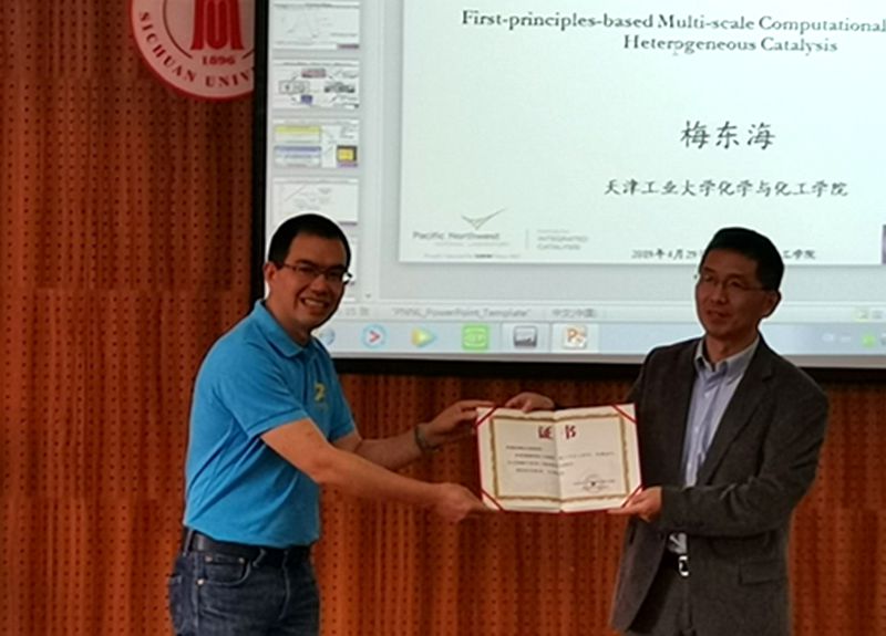 师生做了题为《基于第一性原理的多尺度非均相催化反应计算模型研究》的学术报告。学院唐盛伟副院长、袁绍军主任、鲁厚芳教授、张永奎教授、杨华清教授、任海生副研究员、唐思扬副教授等教师和91黑料