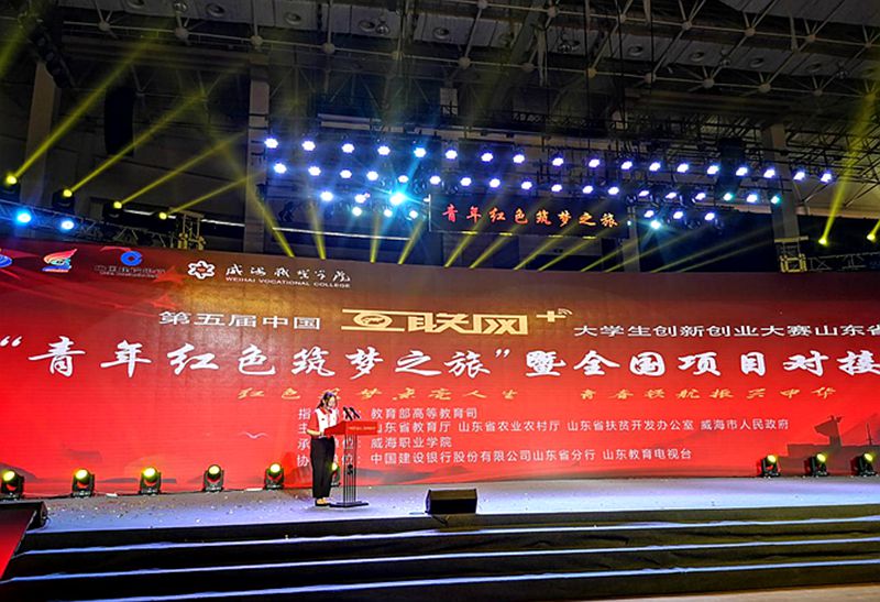 2019年6月18日,第五届“互联网+”大学生创新创业大赛“青年红色筑梦之旅”(山东)暨全国项目对接活动的启动仪式在威海举行,来自17省的183所高校的青年学子相聚齐鲁大地。本次活动是由教育部高教司指导,“互联网+”赛事组委会协同山东省教育厅、山东省农业农村厅、山东省扶贫开发办公室和威海市人民政府共同主办,威海职业学院承办。教育部综合处副处长吴维东,全国高校创新创业投资服务联盟副理事长黄贵洲,山东省委教育工委副书记、省教育厅副厅长黄琦,威海市副市长高书良等出席活动。
