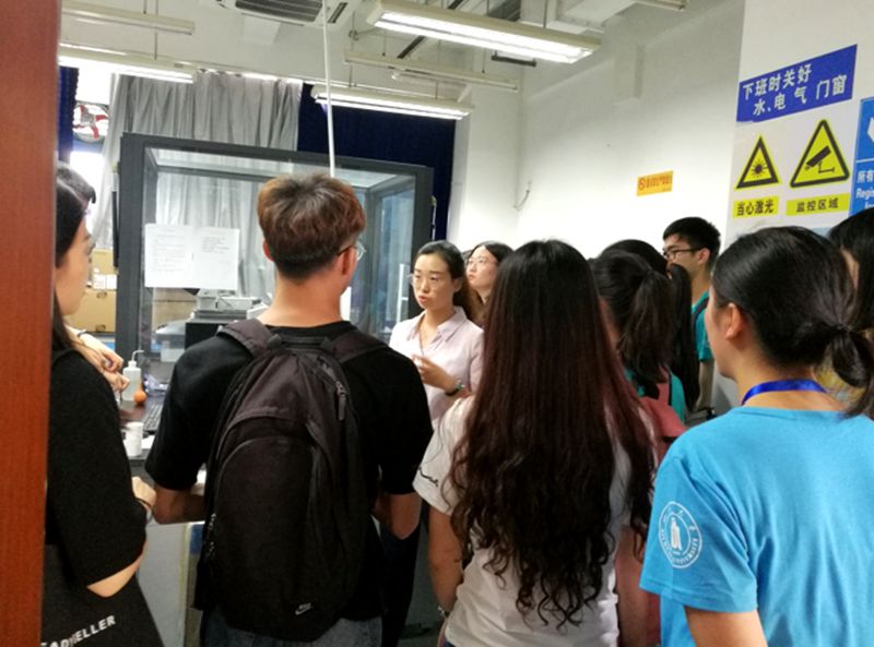 7月8日下午,在化工系主任袁绍军教授、工程实验教学中心主任蒋炜教授和研究生学籍管理老师毛静老师的带领下,参加学院2019年“未来化工之星”优秀大学生夏令营同学来到美丽的江安校区化工学院工程实验教学中心参观交流。吴潘、田文老师作为活动主持代表中心对夏令营同学的到来表示欢迎,对中心的主要情况进行了简单介绍。随后,中心吴潘、林翔、田文、左炀老师分别为同学们详细的介绍了公用仪器平台的PIV、拉曼、红外、扫描电镜等分析仪器设备。参观过程中林翔、左炀等老师不仅对一些仪器设备的功能进行了演示,也对实验装置的原理和运行情况进行了详细讲解。随后承强、王袁隆、魏竭、李季老师带同学们参观了制药、生工、化工、过控等专业实验室,并与参观学生进行了深入地交流,对他们提出的疑问给予了解答,现场气氛十分活跃。