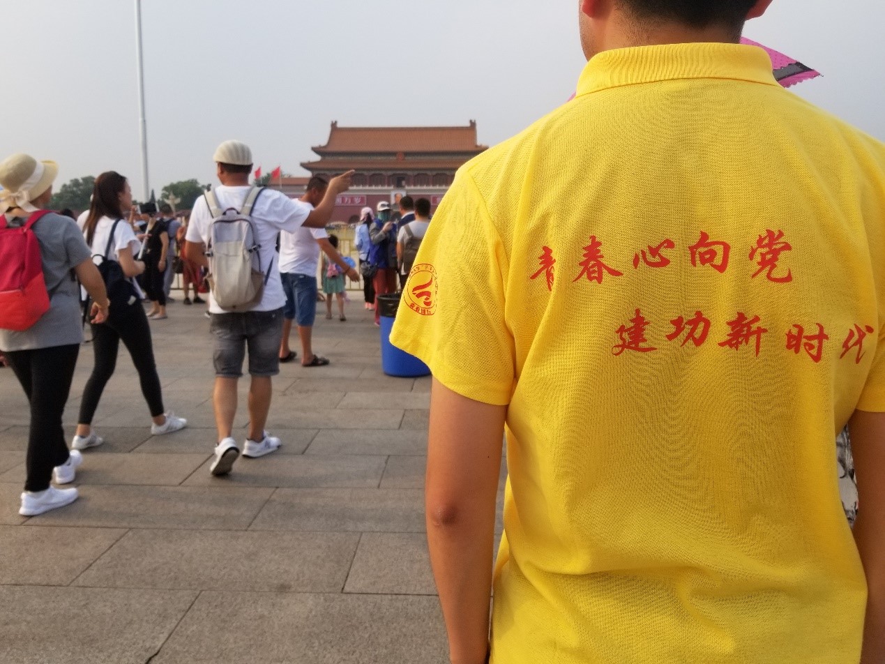 7月27日,实践团队来到了天安门广场。实践团成员们表情肃穆,向迎风飘扬的红色国旗表达崇高的敬意。