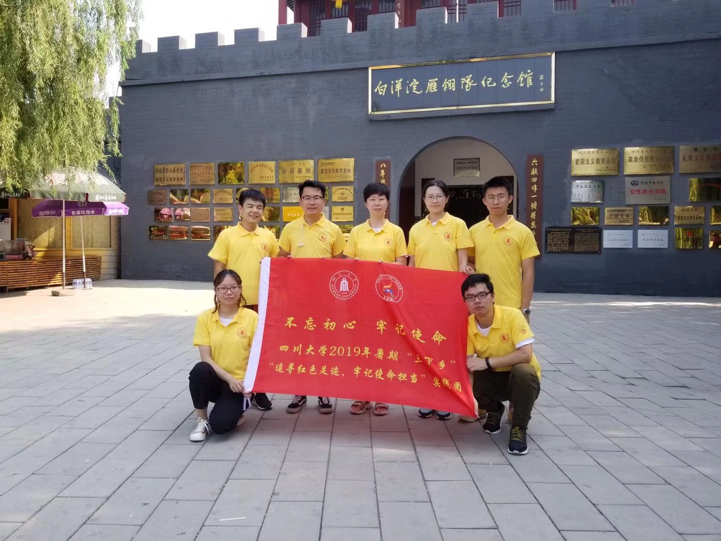 7月26日,实践团队来到了水波浩淼、荷花摇曳、芦苇婆娑的白洋淀。在白洋淀荷花大观园,成员们首先参观了孙犁纪念馆,认识了著名文学流派“荷花淀派”的创立者孙犁先生的文学成就和革命文人的高风亮节。然后来到了白洋淀抗战纪念馆,初步了解了活跃在白洋淀上的抗日武装雁翎队,纪念馆的陈列生动再现了白洋淀的风土人情和白洋淀人民抗战时全民皆兵的炽热忠诚。下午,实践团队来到了白洋淀文华苑,参观了白洋淀雁翎队纪念馆。纪念馆详细介绍了雁翎队“惩汉奸,为民除害”的英雄事迹,洋溢着浓厚的军民鱼水情,诠释了白洋淀人民敢于斗争、机制灵活的雁翎精神。