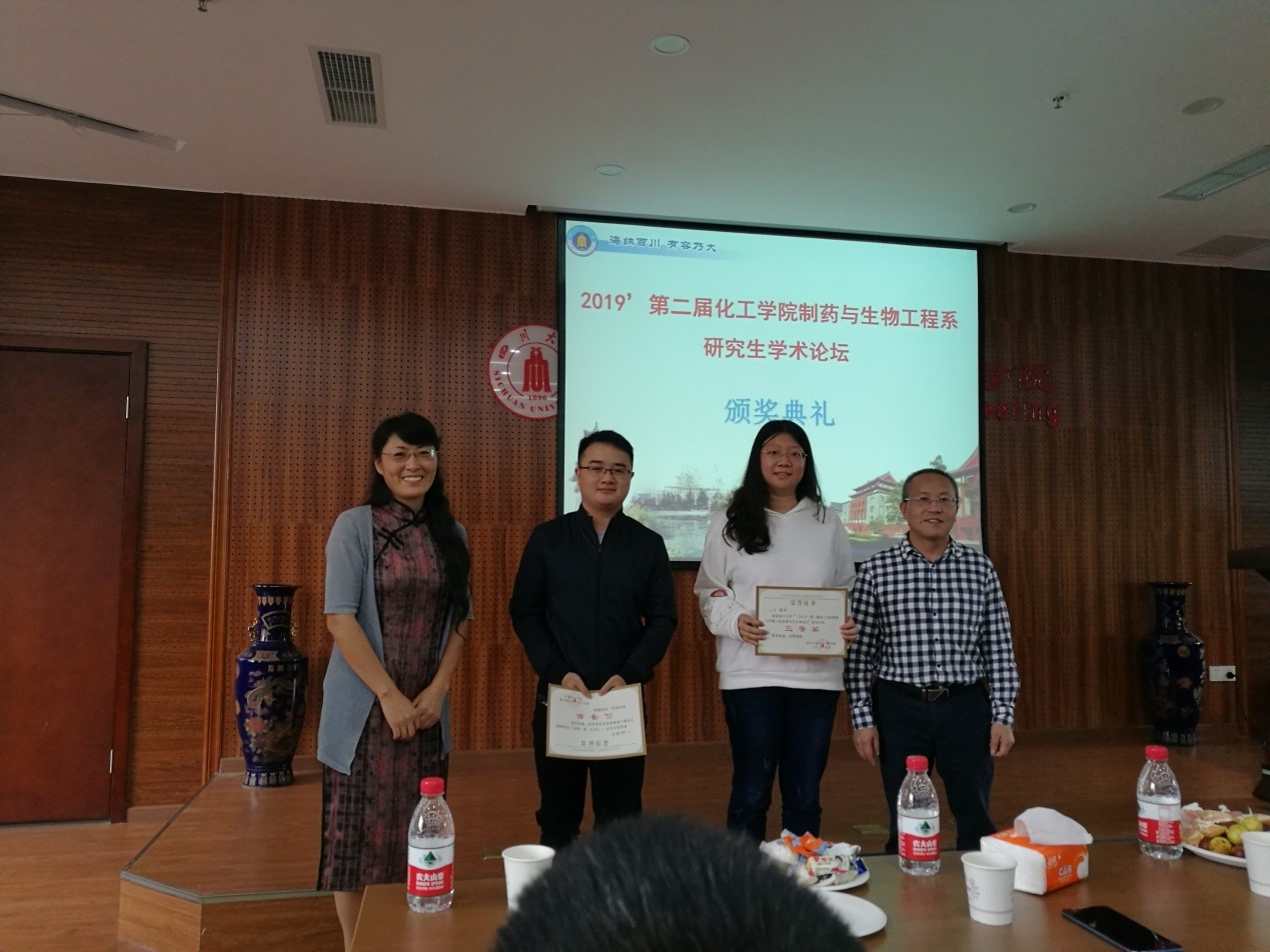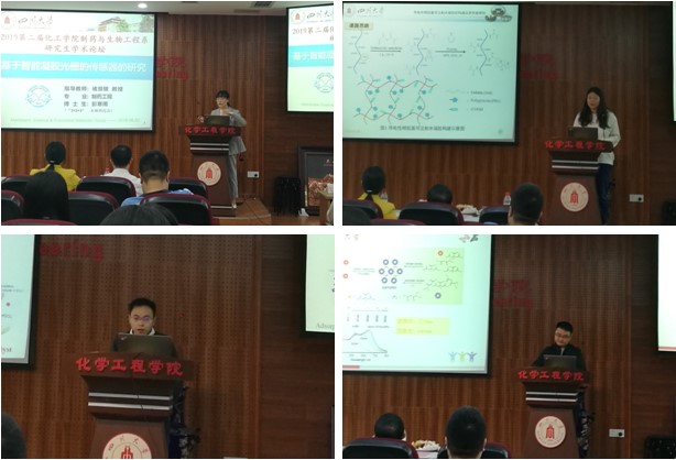 之后,论坛正式开始。来自褚良银教授课题组的彭寒雨、穆畅道教授课题组的王绅、张永奎教授课题组的谢艺和李永生教授课题组的张国麟四位博士生分别为大家带来了《基于智能凝胶光栅的传感器的研究》、《导电性明胶基可注射水凝胶的构建及其性能研究》、《Molten salt induced nitrogen-functionalized biocharnanosheets from candida utilis for the highly effective peroxymonosulfate catalysis》及《基于纳米金团聚变色的碳点荧光开关法测定降糖药盐酸二甲双胍的研究》的主题报告。他们从实际应用出发,结合最新科研成果,为各位研究生展示了丰富的研究内容和科研思路,为各位同学如何做科研提供了非常好的借鉴。随后,硕士组的郭伲宏等10位同学为大家进行了展示,从新型生物材料、新型测试方法和机理分析探讨等不同方面为大家带来了精彩的学术报告。论坛特邀嘉宾在充分肯定各位硕博士研究生精彩报告的基础上,从科研思路、方案设计、数据分析及实际应用可行性上进行了全方位的点评,并就相关问题和同学们进行了良好的交流,指出了问题及解决方法,给各位同学带来了启发。最后,经过学术委员会的一致评定,彭寒雨、郭伲宏荣获一等奖,谢艺、乔亮智、邓磊、张曼荣获二等奖,王绅、张国麟、童文华、毛新艳、周慧荣获三等奖。