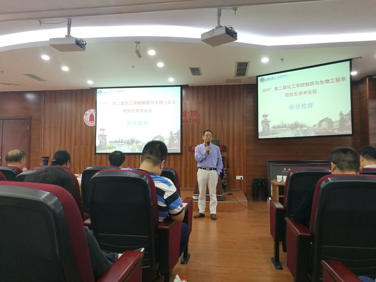正行楼313报告厅顺利举行。化工学院副院长唐盛伟教授、院长助理兼制药与生物工程系主任李德富副教授、本次论坛学术委员会主席宋航教授、学术委员会委员巨晓洁教授、李延芳教授、杜开峰教授、马丽芳副教授、刘文彬副教授、李子成副教授、李子元老师以及制药与生物工程系全体研究生等100余位师生参加了此次论坛。此外,本次论坛特别邀请了成都中医药大学崔名全教授、西南交通大学封顺教授、西南民族大学王晓玲教授、西华大学杨文宇教授、成都理工大学曾庆乐教授作为本次论坛的特邀嘉宾。