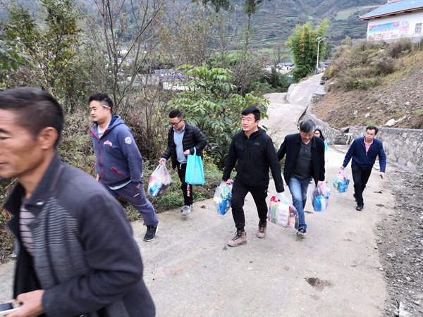 定点扶贫工作领导小组的要求和学院定点扶贫格布村实施方案,2019年10月31日-11月1日,在学院党委书记庞国伟的带领下,由学院化工系教师、化工系党支部代表杨林、严正娟,综合管理科杨谨瑗组成的扶贫慰问工作组赴凉山州甘洛县格布村对定点帮扶的13户彝族家庭开展实地走访慰问。